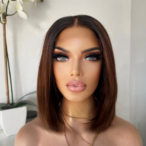 12” Brazilian Brown Bob straight wig Lace: 3-part closure